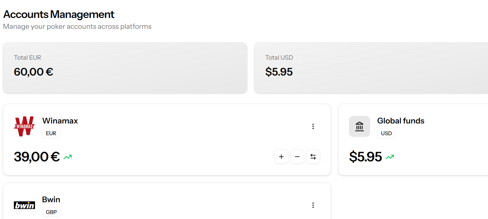 Effective bankroll management is the cornerstone of a sustainable poker career because it protects a player from the inevitable swings of variance while preserving the capital needed to stay in the game. However it's hard to have a clear overview of our bankroll when our funds are spread between multiple poker rooms and private accounts.