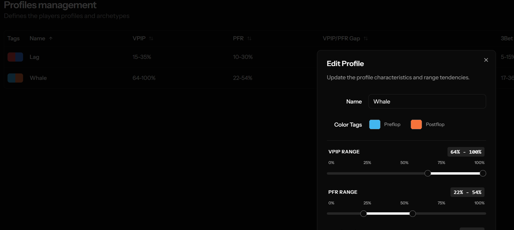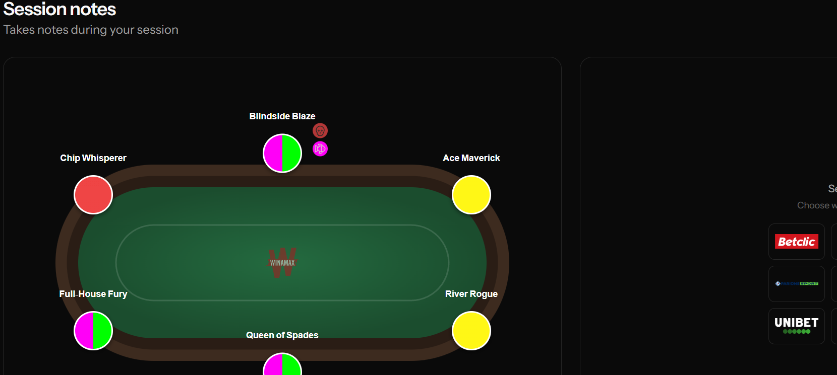 During your sessions, you can add notes, profile, and add multiple tags to your opponents to remember what you learned and to adjust your strategy accordingly.